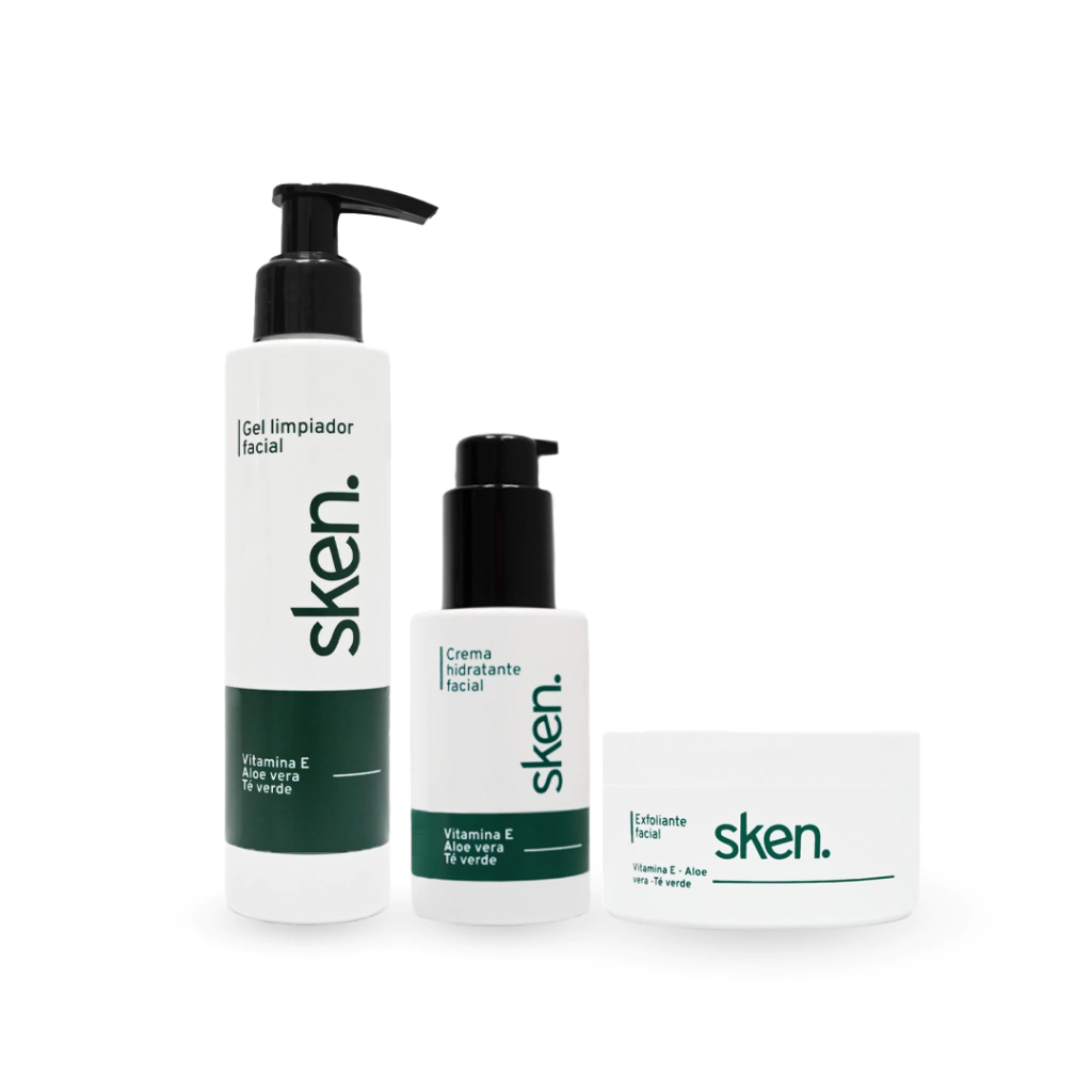Descubrí el Kit Diario Sken, la rutina completa de skincare diseñada especialmente para el cuidado de la piel masculina. Este kit incluye los tres productos esenciales: gel de limpieza, exfoliante y crema hidratante, que te acompañarán en el paso a paso para lucir una piel fresca, limpia e hidratada.